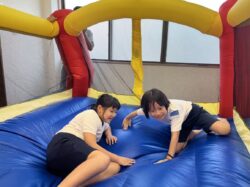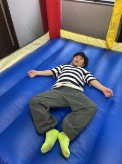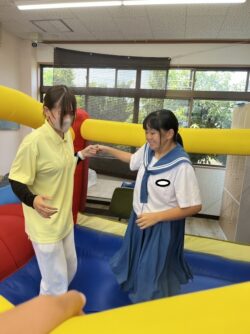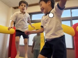 お友だちやスタッフさんと一緒に飛び跳ねたり