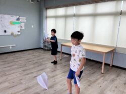 お昼から紙飛行機を作り、外と室内で飛ばしあいをしました😄