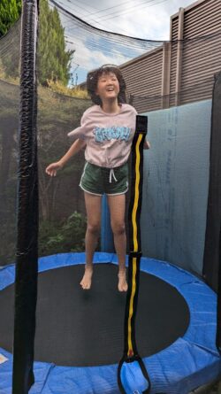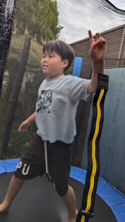順番を守りながらジャンプして体を思いきり動かし、元気いっぱいに楽しみました。ふわっと浮く感覚に「もう一回やりたい!」と大人気でした✨