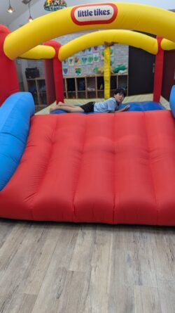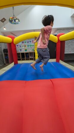 今日は、子どもたちと一緒に「室内バウンサー」と「公園あそび」の二つに分かれて活動しました。