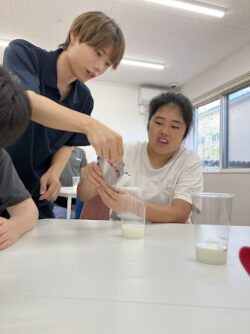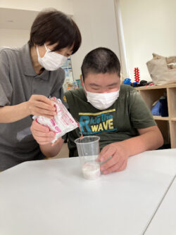 プラカップの外側に線を引いている為、牛乳とフルーチェを入れる量が一目でわかります!