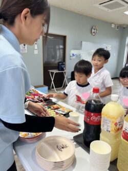 ドリングは、フルーツオレ/コーラ/アップルジュース、お菓子はスナック菓子に、手作りの”ガネ”(サツマイモを揚げたもの:鹿児島の郷土料理)のラインナップです🐧