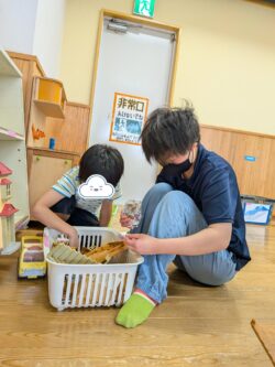 午前中は、子どもたちがそれぞれ好きなおもちゃを使って、無理のない範囲で遊んで過ごしました!