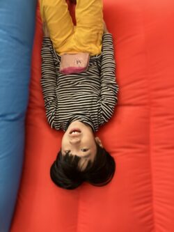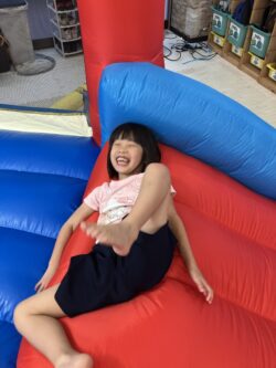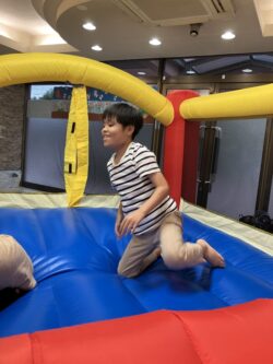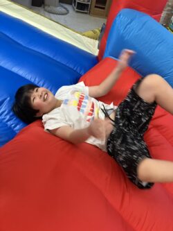 「今日の課題は何でしょう?」と、スタッフが質問すると、「バウンサー!!」と元気よくニコニコ笑顔で答えてくれました!(^^)!💛