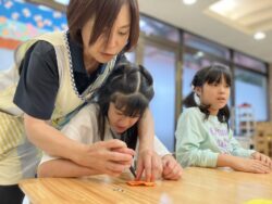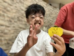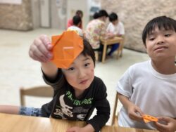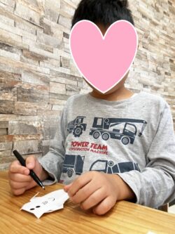 本日は、ハロウィン🎃にちなんで、シールを貼ったり、お顔を描く指先運動を行いました。