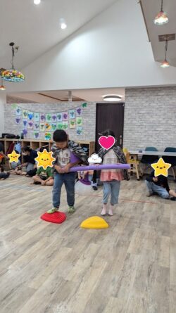 平均台を渡ったり、フープをジャンプしたりしながらゴールを目指します🏃♀️🏃♂️💨