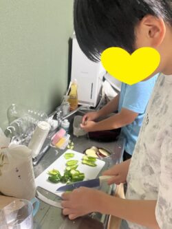 まずは中学生に野菜を切ってもらいます🔪🥬