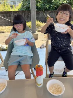 外では火をつけるお手伝いをしました。