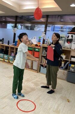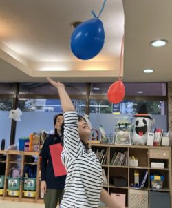 今度はスタッフが伝えた色の風船をタッチするよ🎵
