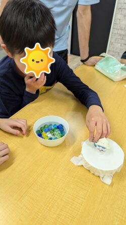 ドキドキしながら順番にビー玉を乗せて、