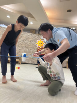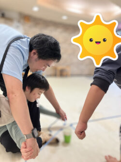 紙コップを取れなくても、ヒモを握って参加できたことだけで花丸💮!