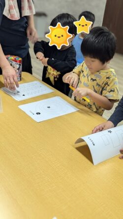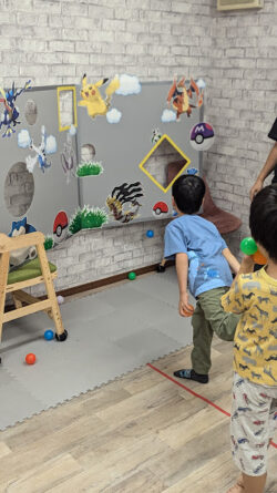 プリントを解き終わったお友達から、ボールを貰ってボール入れに挑戦です!