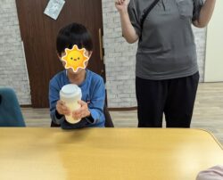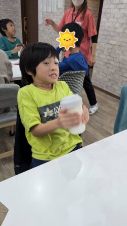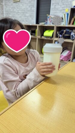 容器に入っている「生クリーム」をみんなで協力して振っていきます🎶