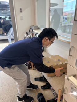 ダンボールに入っている製品を丁寧に運んで