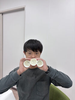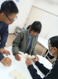 各グループカラーのシールが貼ってある紙コップを見つけて