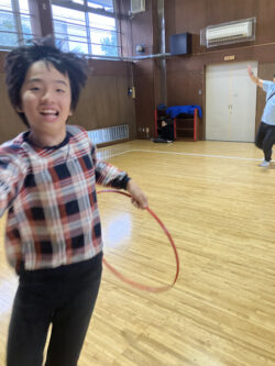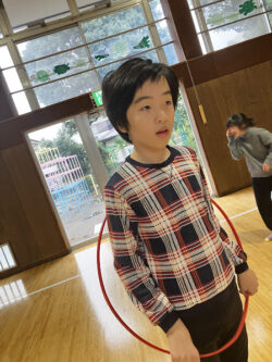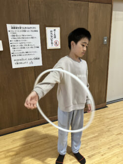 フラフープを使って好きなように遊んだり…
