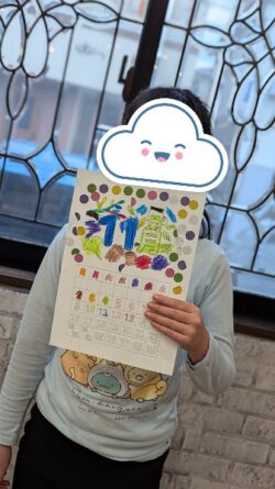 自分の好きなものを選び、ぬりえやシール貼りをして世界に1つのカレンダーを制作しました👏