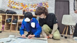 アトリエまはろでは、みんなで分担して一つの大きな作品を作り上げることで、友達と一緒に作品を作る楽しさを感じることができ、