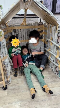 完成した作品の中に入って、楽しそうにしていました(⌒∇⌒)