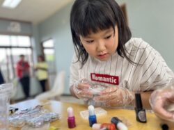 レジンでは、集中していろんな色を混ぜたりキラキラを入れて可愛く制作していました✨