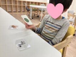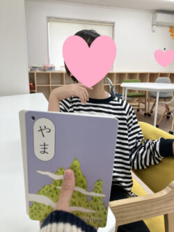 プログラムの中には、絵カードを使った言葉に関する練習もあります。
