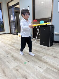 ②パタパタボールでは、うちわを使ってカラーボールをパタパタ