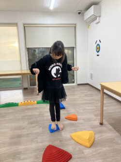 ①マット運動(アザラシ歩き)②一本橋渡り ③飛び石の3つのトレーニングに挑戦しました💪🔥