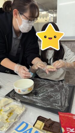 身近な食材「餃子の皮」を使ってチョコパイ作りを行いました。