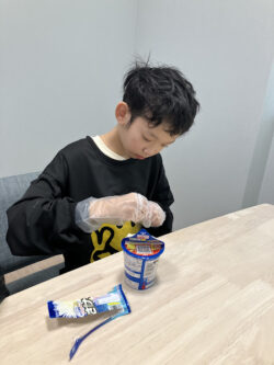 ②そこに、熱湯を150ml注いで、フタをする