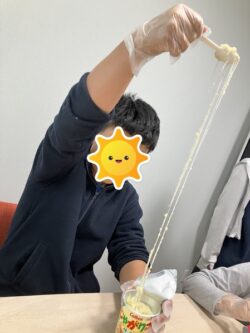 伸びるチーズを見て楽しそうに作ってくれました⭐