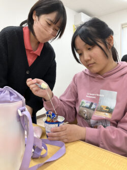 スタッフと一緒に混ぜてみたり、