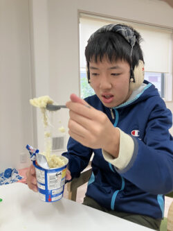 どの種類のじゃがりこを買うかみんなで相談しています…!