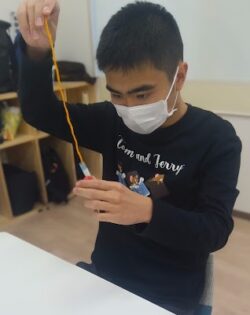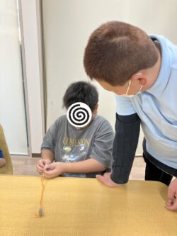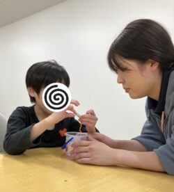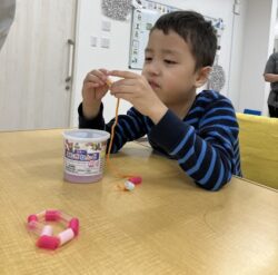 ストローを毛糸に通す、指先を細かくコントロールする力。