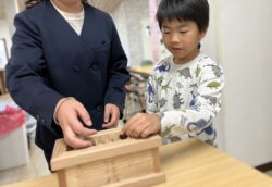 その後手作りの鳥居とお賽銭箱を用意してお参りの仕方を学びました⛩