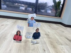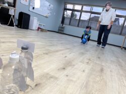 ペットボトルにスタッフの顔写真を貼り、水を入れてピンにしました🤣