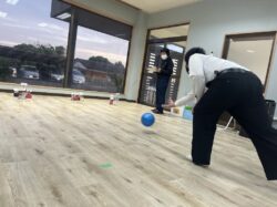 みなさんのご想像通り、スタッフのピンを倒してもらいます!