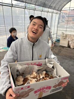 午前中は、しいたけのお世話と洗車をするグループに