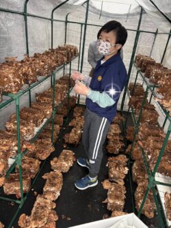 外での活動(しいたけのお世話と洗車)