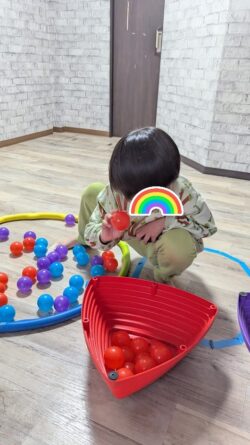 ランダムにカラーボールを取るお友達や一色ずつ入れていくお友達など、