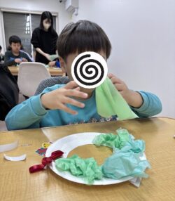 まずは、紙皿に丸めたお花紙を貼っていこう✨✨
