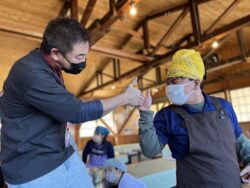 ピーラーを使ったことのないご利用者様もいらっしゃったようで、スタッフとチャレンジ!
