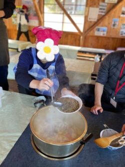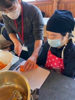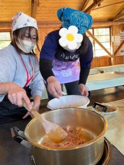 職員さんの説明を聞きながら、グループごとにカレーを作ります🥄