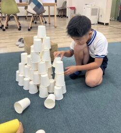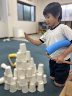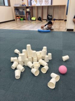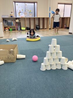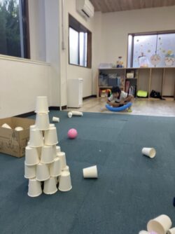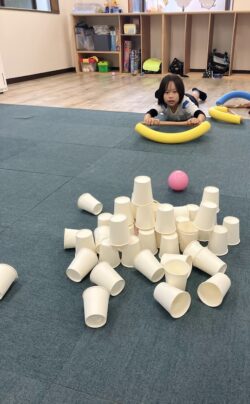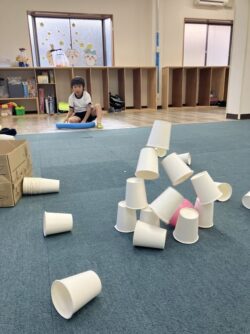 その後も、たくさんの紙コップでタワーを作って、その都度倒していくゲームを楽しみました😁👍