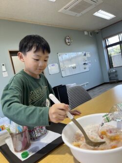 帰ってきて、おやつの時間には「フルーツポンチ」の盛り付け💕🍨🍴🥄