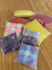 緩衝材の中に綿やカラーセロハン、フェルトボールを入れてみました!!🎈