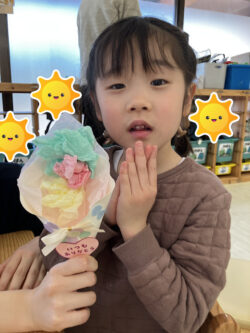 そのために、鮮やかな色のおはながみでブーケを作りました💖
