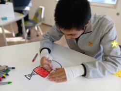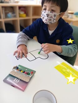 丁寧に色を塗る利用者さん!