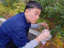 今日は、しいたけハウス内のゴミを拾いキレイに!