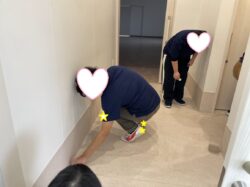 室内では普段掃除できない、床を激落ちくんでゴシゴシ!