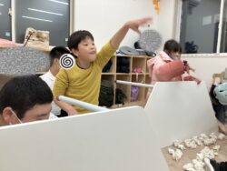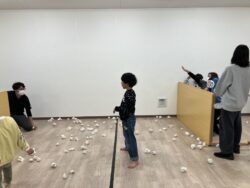 スタッフが事前に用意した画用紙の”雪玉”を使って、